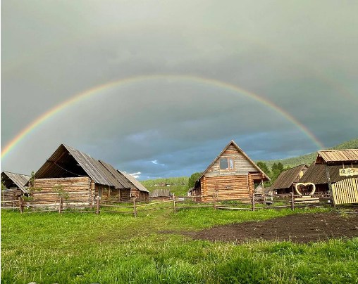🦋Day3 布爾津吃早餐(俄式打包,吃過油肉拌麵)→🚗3h→沿途的風景甚至比禾木村還要美!五一前可以開車去村里,五一後就只能停🅿️了。禾木看日落,看日出,看晨霧,看可愛的牛馬,好不真實→住小木屋(我們住在老村民宿,爬日出點30分鐘