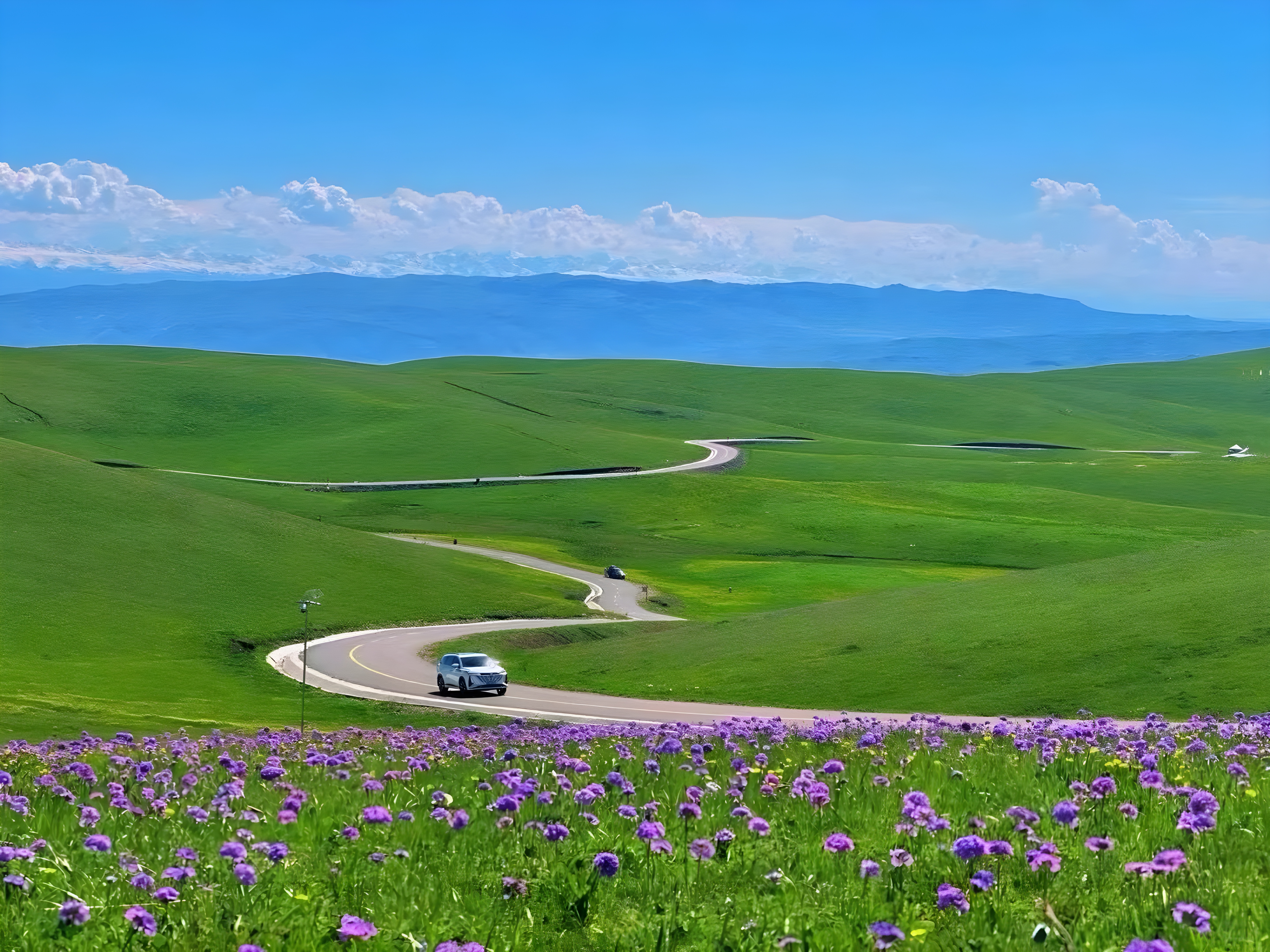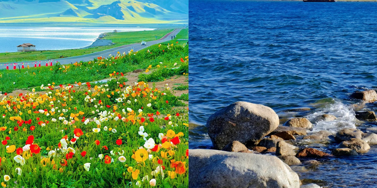 🦋Day6 克拉瑪依→🚗5h→賽里木湖自駕環遊,東門進南門出❗️尊嘟一年四季都絕美,雪山🏔️湖泊草原小花晚霞落日💙 i了i了→ 🚗2h→住宿伊寧五星級酒店高性價比,吃手抓羊夜宵美滋滋